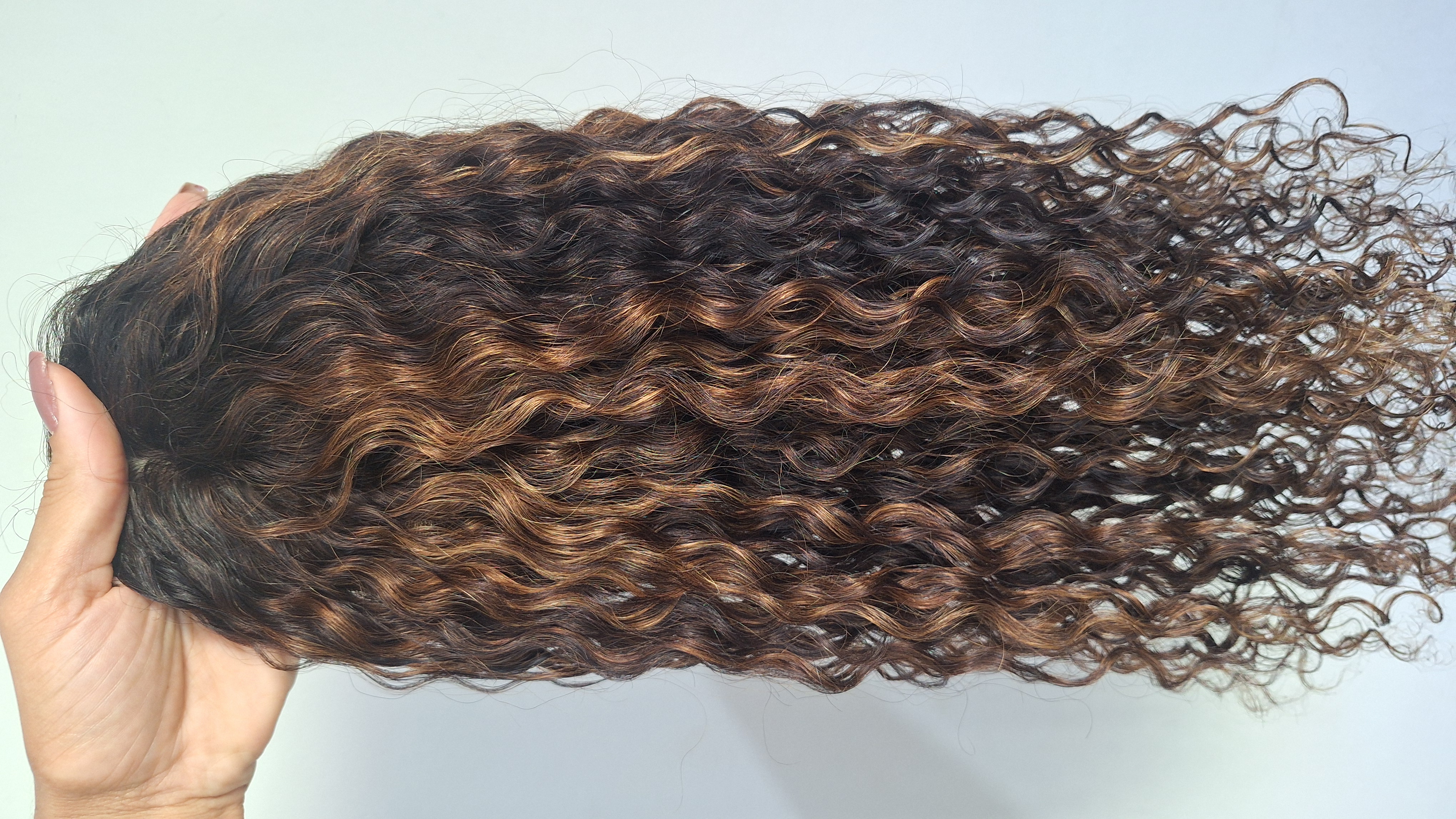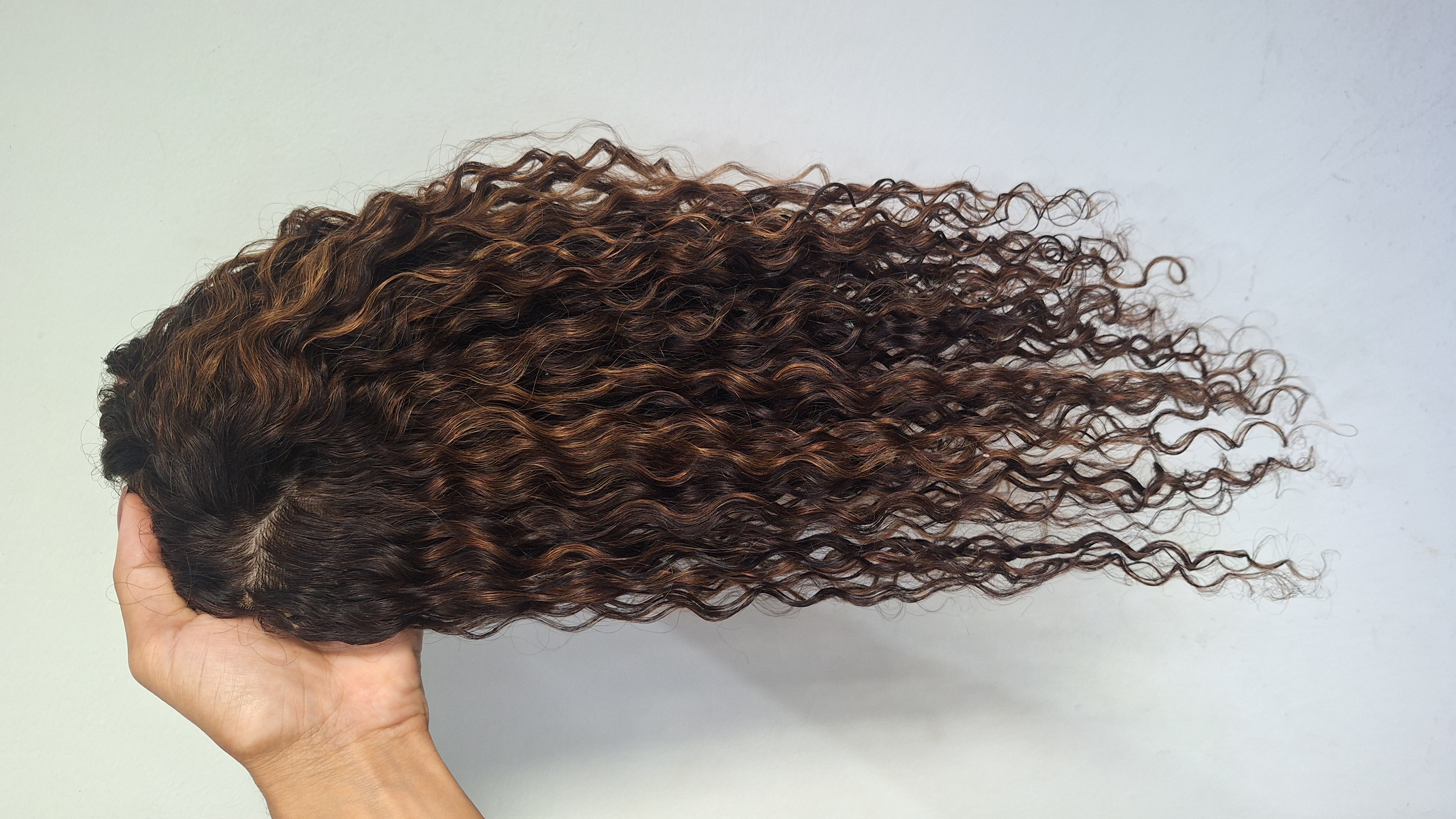Confeccionado em cabelo 100% humano, esse topo cacheado se adapta facilmente ao seu cabelo, ajudando a disfarçar falhas, entradas ou rarefação, sem pesar e sem aparência artificial.