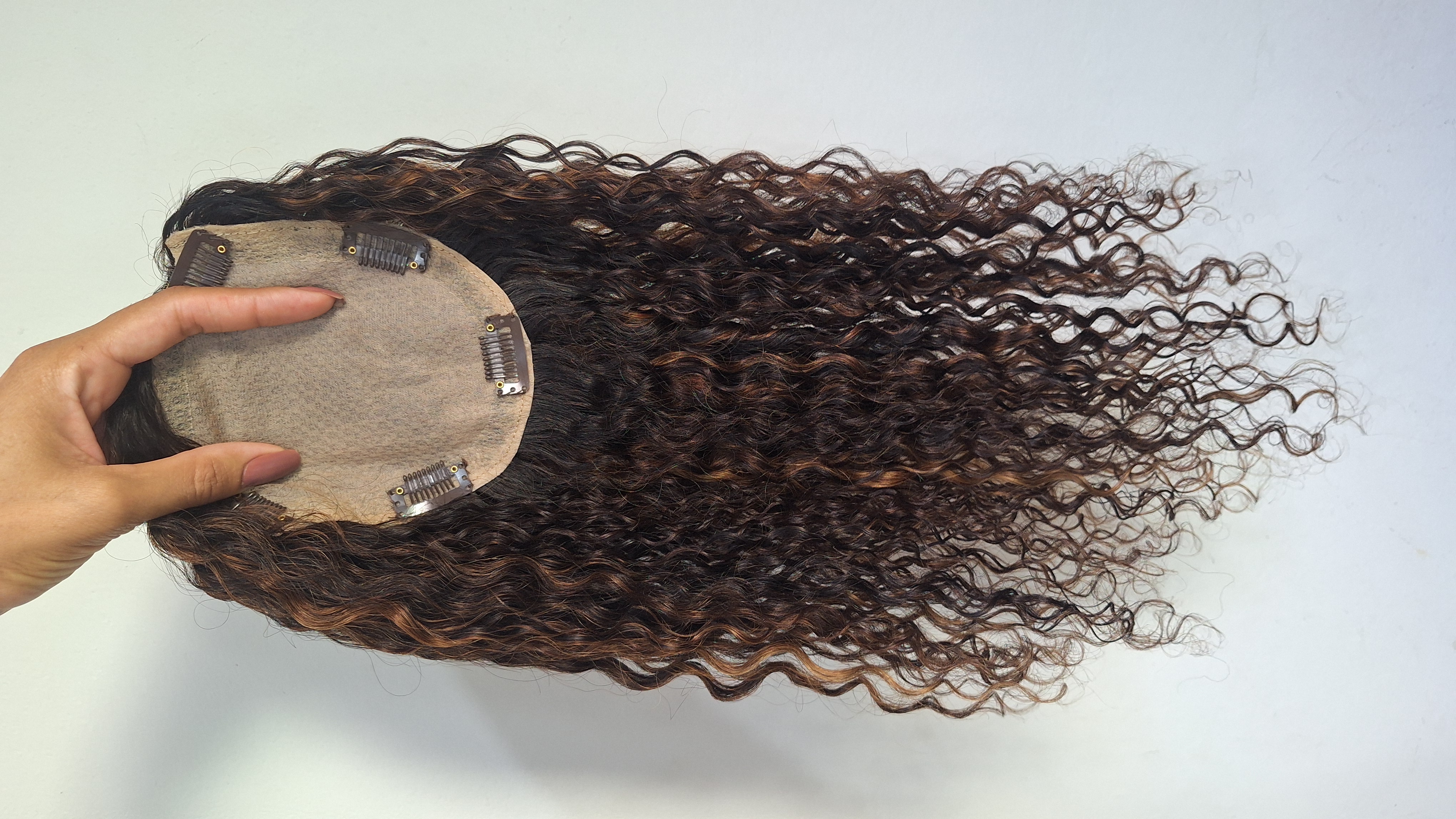 Produzido em 100% cabelo humano, com cachos definidos, macios e movimento natural, o topo proporciona um visual elegante, leve e extremamente realista.