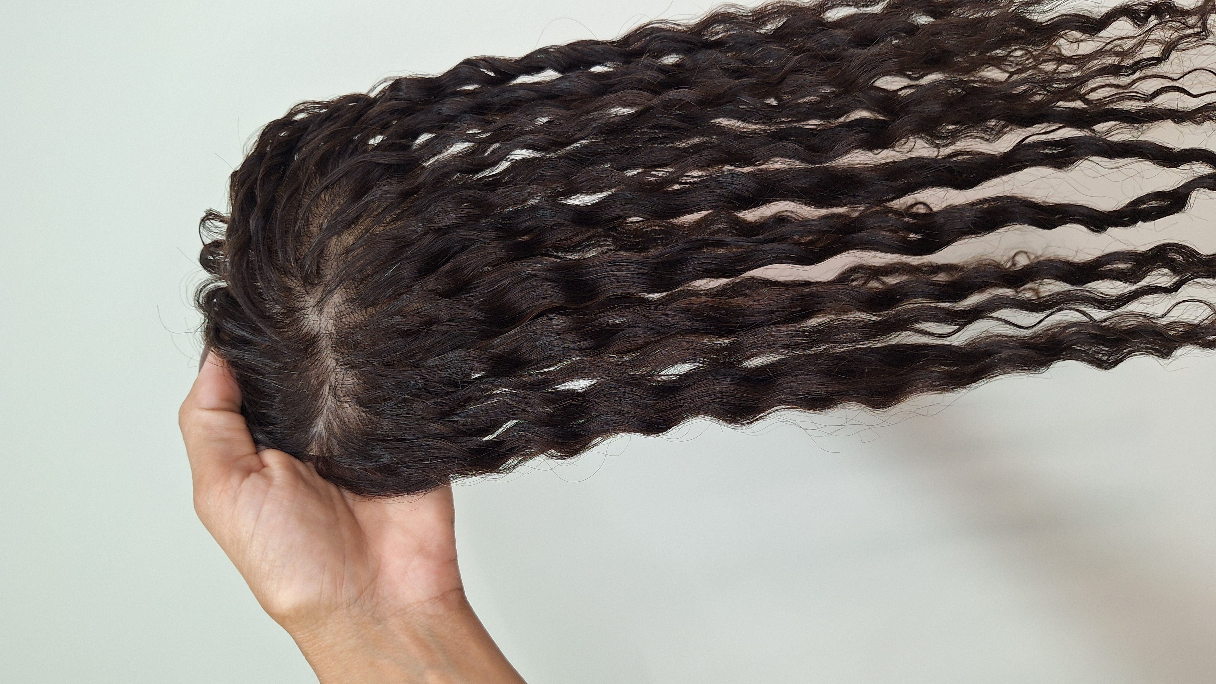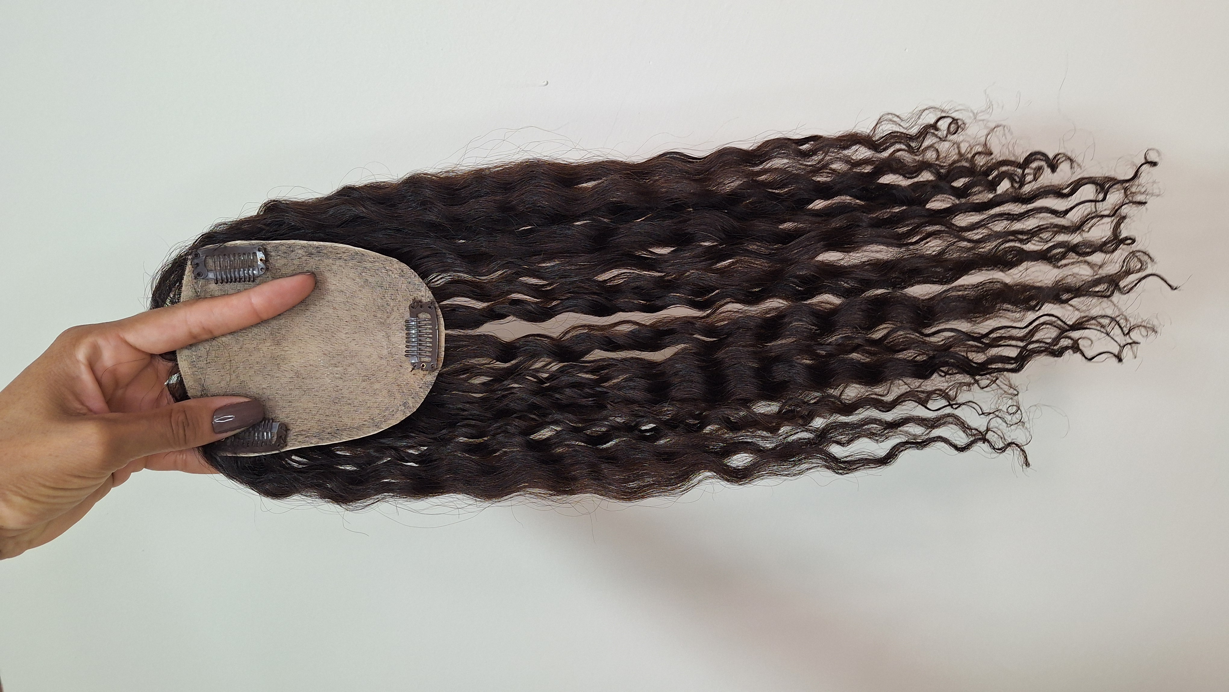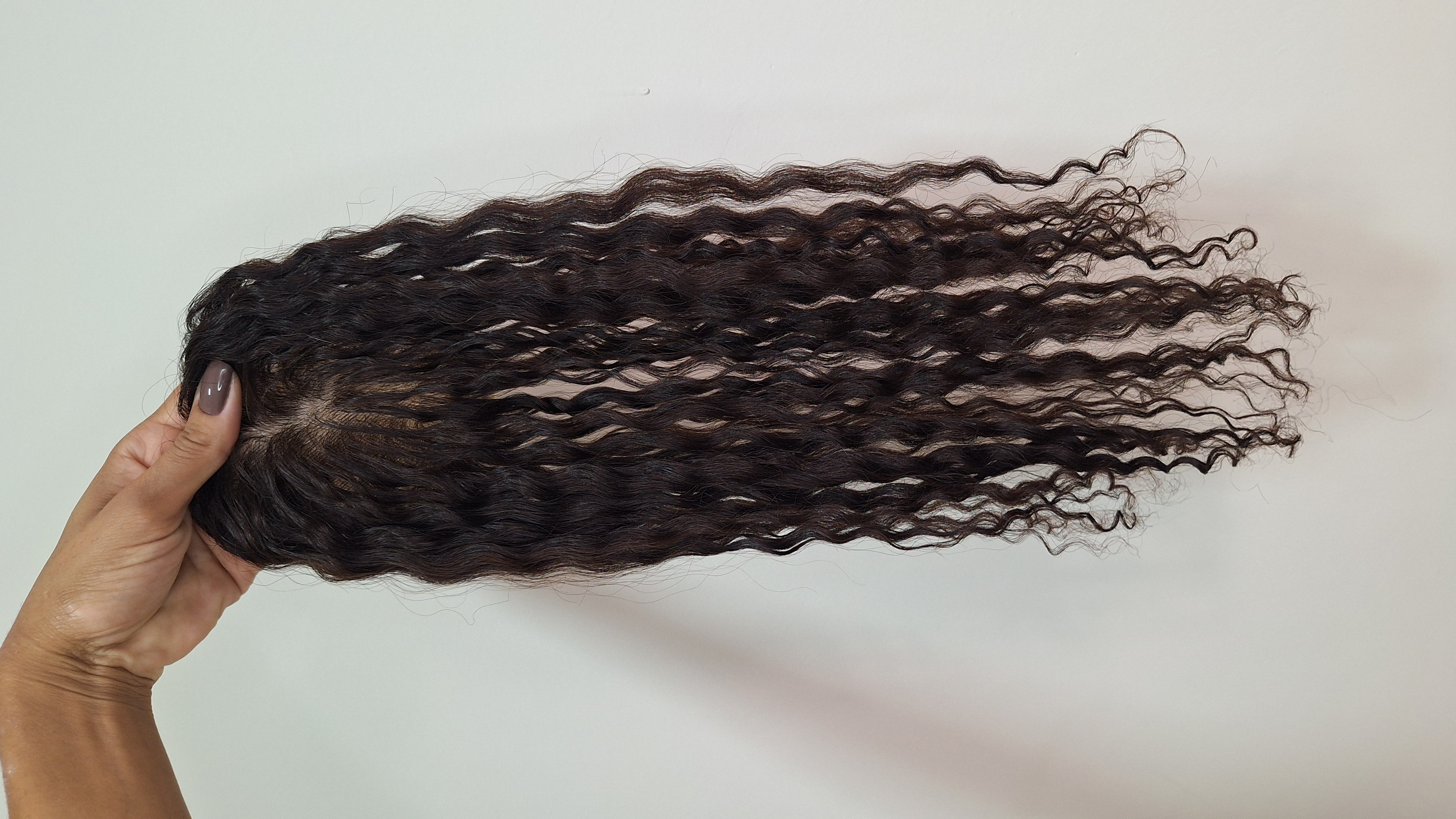 Topo Capilar ondulado, feito com 100% cabelo humano para um acabamento realista e natural. Ideal para quem busca disfarçar falhas, entradas ou fios brancos, este topo oferece conforto, versatilidade e qualidade artesanal para transformar seu visual com autenticidade.