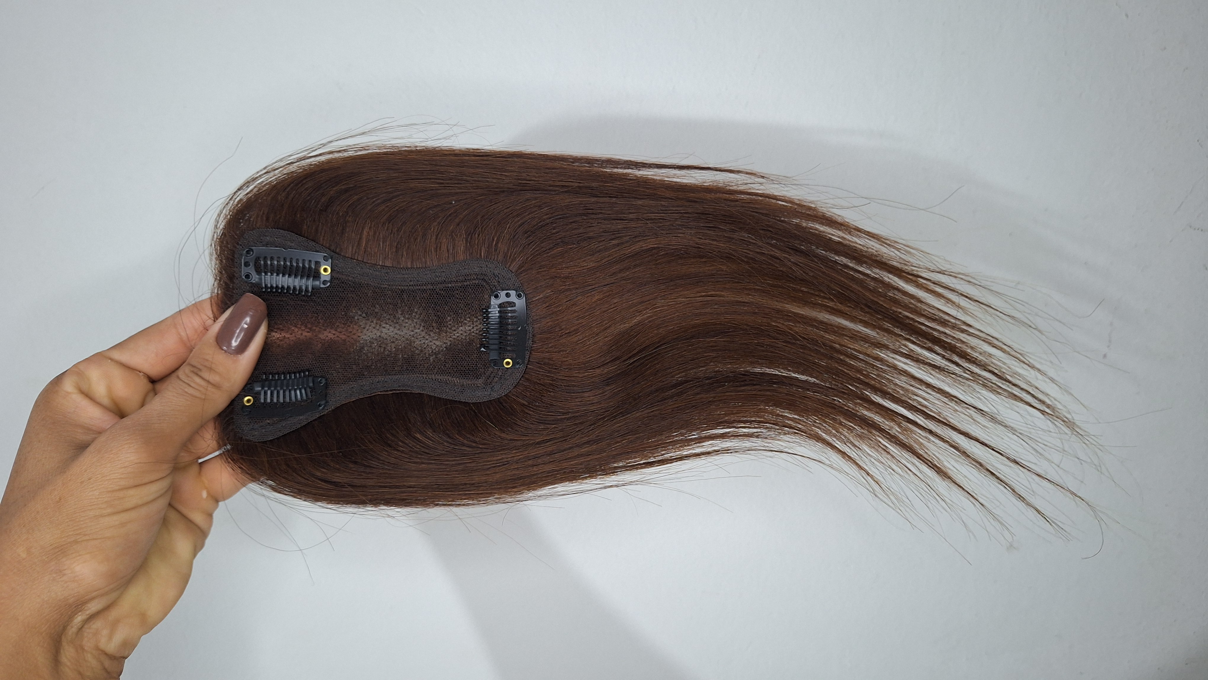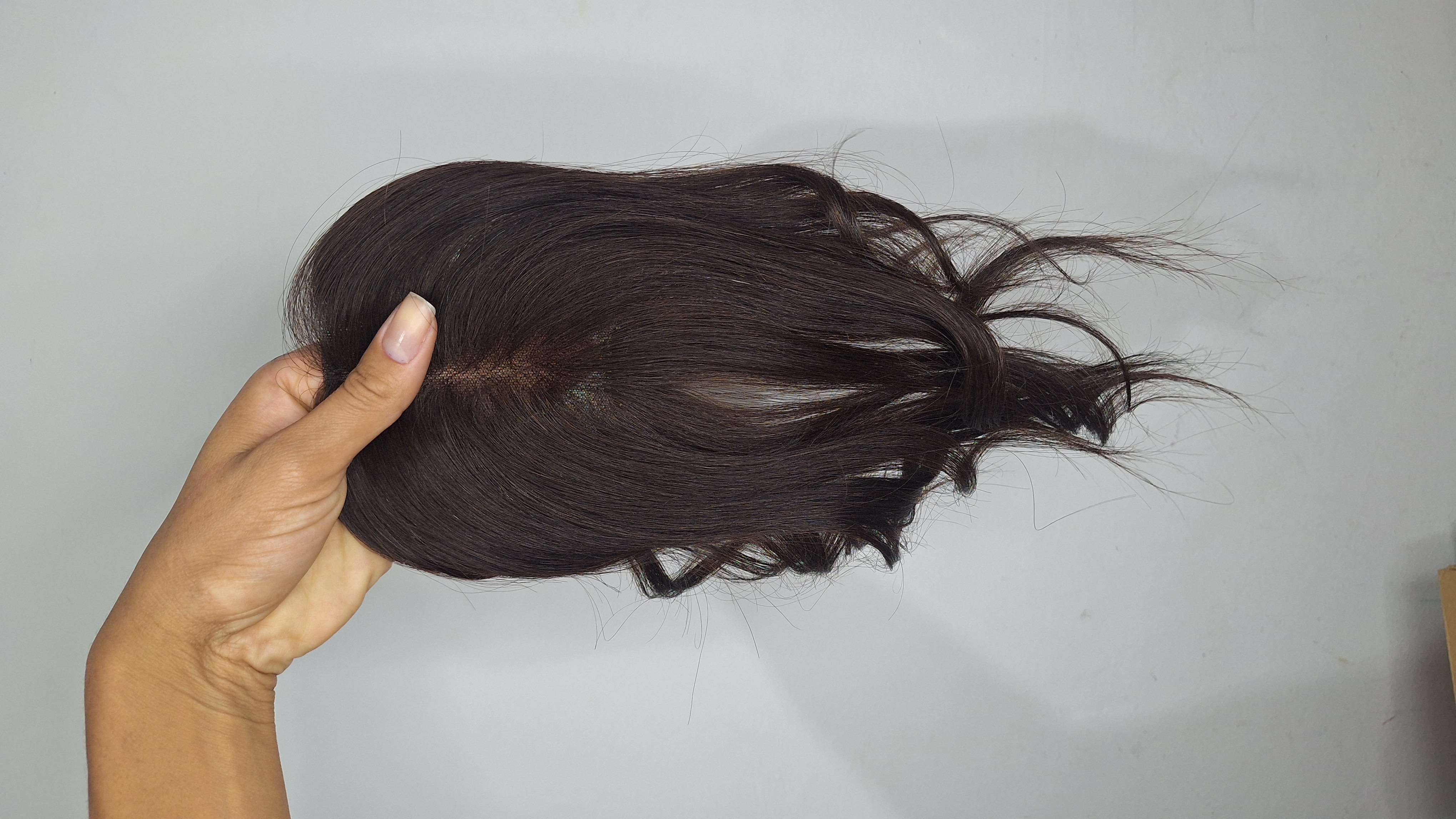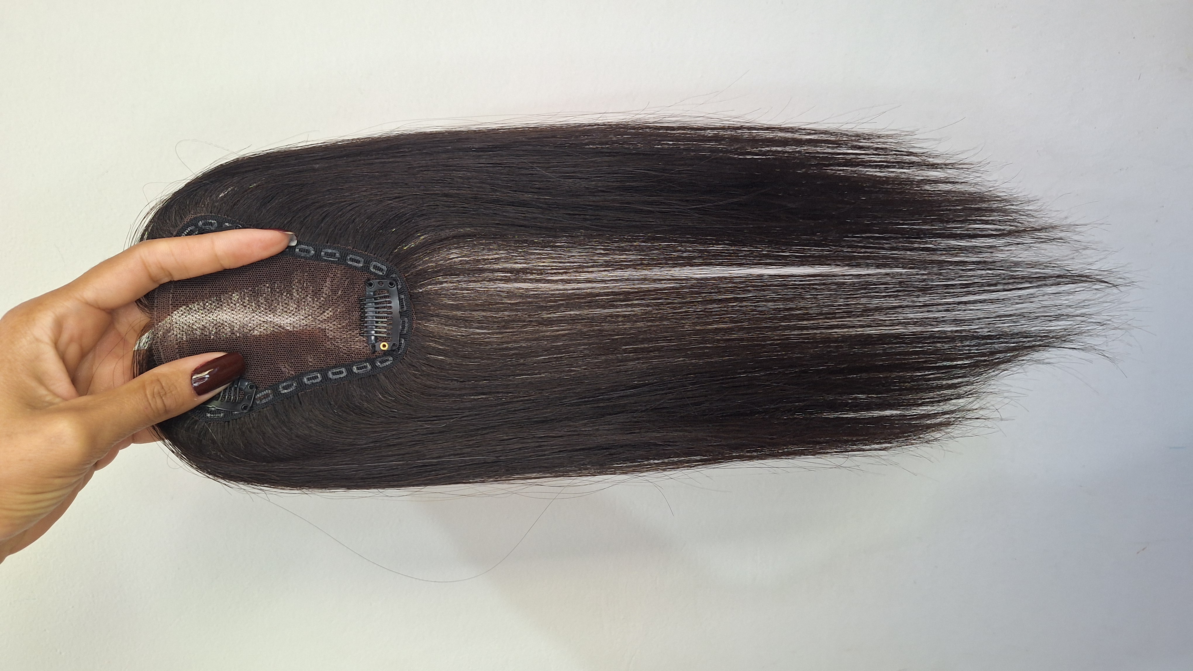 Transforme seu visual com o Topo Personalizado Franja Full Repartição Livre, confeccionado com 100% cabelo humano real, ideal para cobrir falhas e garantir um look sofisticado e confortável.